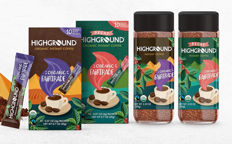Highground là dòng cà phê hòa tan hữu cơ được làm từ 100% hạt Arabica có nguồn gốc từ các vùng trồng cà phê ở Châu Mỹ Latinh. Toàn bộ sản phẩm đều đạt chứng nhận Hữu cơ và Thương mại Công bằng, thể hiện cam kết của thương hiệu về một quy trình sản xuất bền vững và có đạo đức. Nhờ sử dụng hạt Arabica và được rang ở mức vừa, hương vị của Highground rất cân bằng, êm dịu, tránh được vị gắt thường thấy của Robusta. Công nghệ sấy thăng hoa tiên tiến giúp cà phê giữ trọn hương vị và có thể hòa tan tốt ngay cả trong nước lạnh. Đây là lựa chọn lý tưởng cho những ai tìm kiếm một sản phẩm cao cấp, tiện lợi và có nguồn gốc rõ ràng.